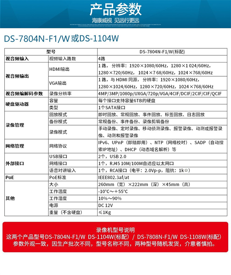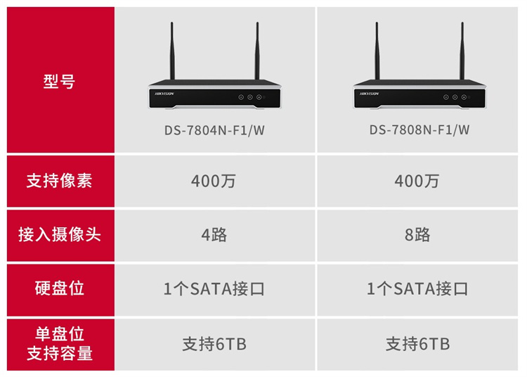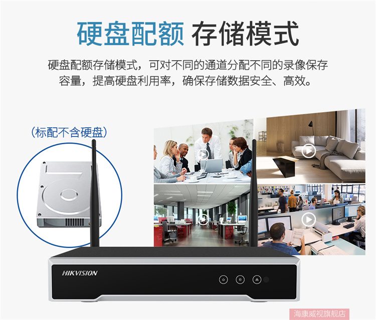 海康威视 DS-7804N-F1/W(4路/1盘位) 海康威视无线WIFI网络硬盘录像机NVR监控主机连接海康无线监控摄像头