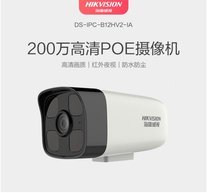 海康威视(HIKVISION)DS-IPC-B12HV2-IA 监控摄像机 POE供电/ 4MM焦距