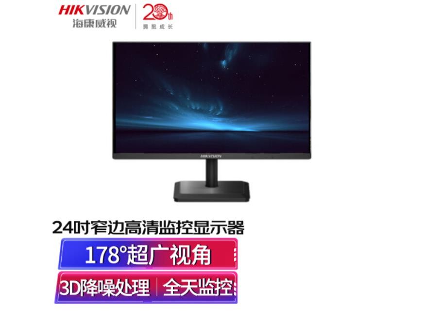 海康威视HIKVISION 24英寸显示器低功耗多接口全天候监视器D5024FQ-N台式机电脑监控显示屏1080P高清屏幕
