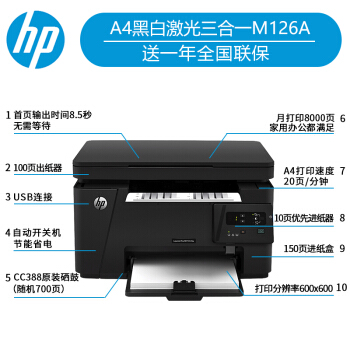 惠普(HP)1126a黑白激光打印机一体机复印扫描家用办公 M126a(打印复印扫描+USB连接)
