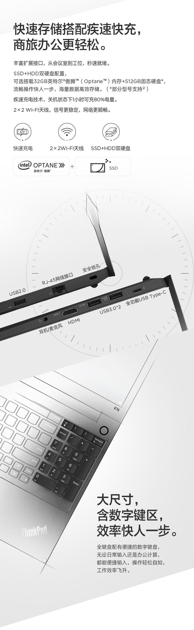 联想ThinkPad 十代酷睿i7 轻薄本 商务办公便携学生笔记本电脑 游戏本 i7-10510U E15 15.6英寸 高清IPS屏 0LCD 8G内存 512G固态硬盘 升级
