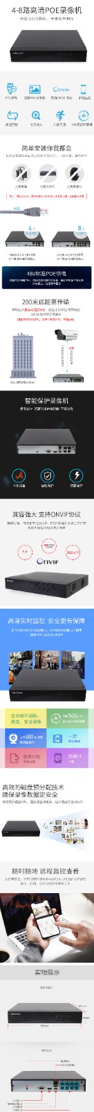 海康威视 DS-7804N-F1/4P(C) 数字硬盘录像机 4路poe高清网络硬盘录像机NVR监控主机 计价单位:台
