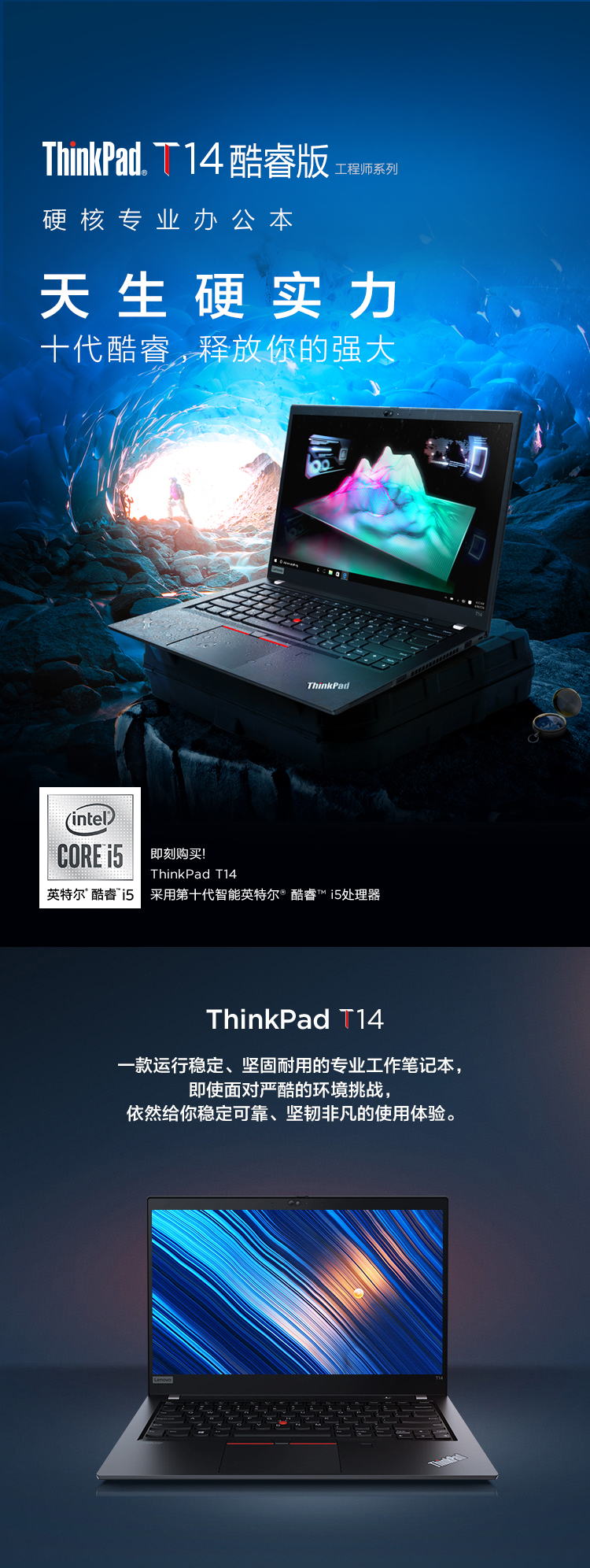 联想ThinkPad T14 酷睿版 英特尔酷睿i5 2020款 4FCD 14英寸轻薄笔记本电脑 i5-10210U 8G 512GSSD 2G独显