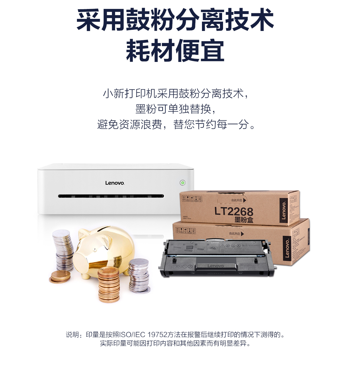联想(Lenovo)小新LJ2268 黑白激光打印机 小型商用办公家用打印